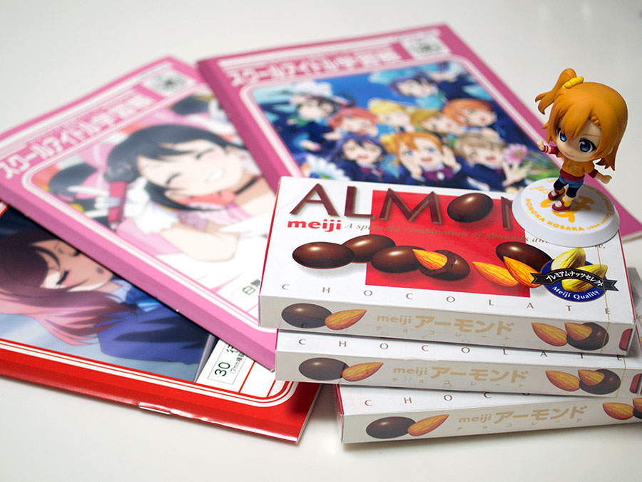セブン‐イレブンでラブライブ!キャンペーンをやってた。第一弾はスクールアイドル学習帳。こりゃ急いでもらわにゃ! うおおおおーっ(鬨の声)ということで明治のアーモンドチョコを 3個買う。勘違いしないでよね、ノートが欲しかっただけなんだからっ!...