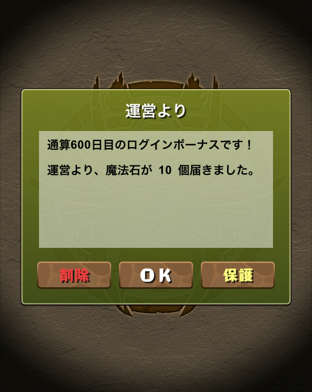 ビデオゲーム 通算600日目のログインボーナス
